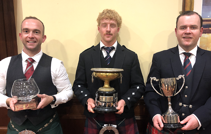 Adjudicators were Logan Tannock and David Caldwell. Pictured above (l-r) with their trophies are winners James Stone, Andrew Nelson and James Frazer. Results as follows: