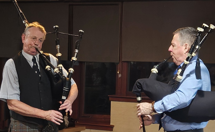 Nevertheless, an enthusiastic crowd of around 60 came to Inverness Golf Club to hear a variety of tunes and instruments played by the two early pipers from the Battlefield Band, Duncan and Dougie Pincock.