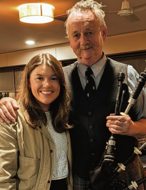 Annia MacGillivray and dad Duncan at the end of the recital. Annia wrote…’He played a lovely piobaireachd whilst storm Amy battered the windows outside….what a man!’