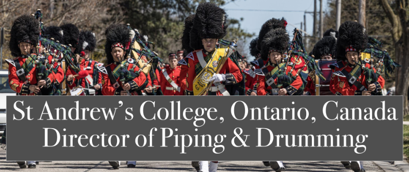 St Andrew’s College in Ontario, Canada, are looking for a new Director of Piping & Drumming. The full time job begins in August next year.