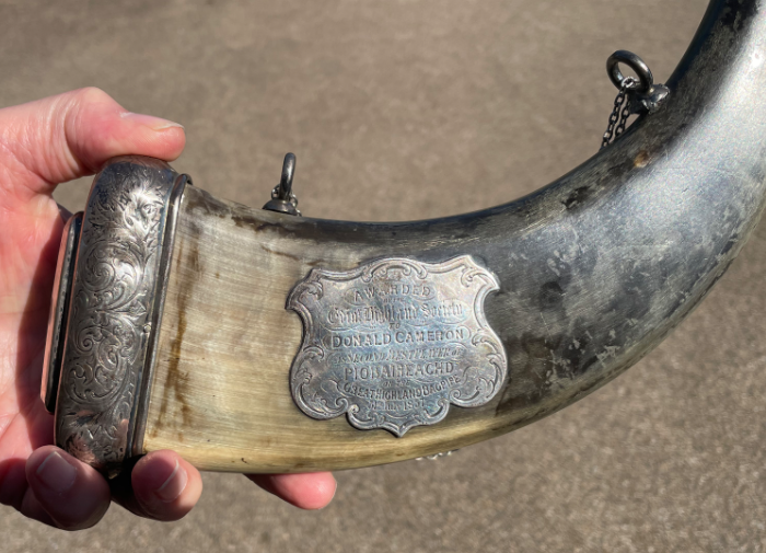 I believe there may be more than one Donald Cameron Powder Horn, another being held by ‘wee’ Donald’s family, it having been presented to the maestro back in the 1970s. More information welcome.
