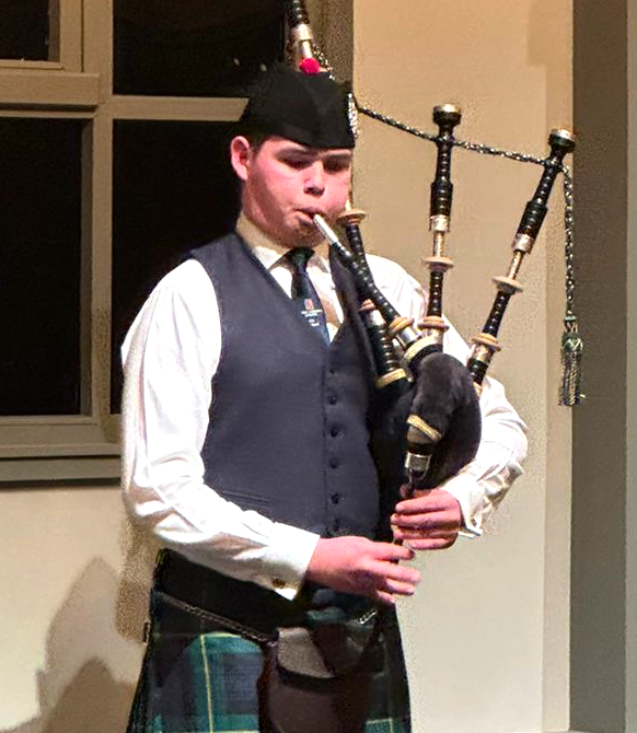 One of our young pipers Murray Barclay, kicked off the night with some traditional marches. He has had an interesting start to his piping career. He’s already played for the HM The King, Princess Anne, and even US President Donald Trump, and now, to cap it all, Duncan Watson!