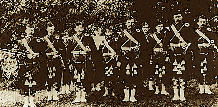 Lord Archibald Campbell was the second son of the 8th Duke of Argyll and a great piping enthusiast. He raised and paid for the first Inveraray Pipe Band in the late 1800s. They played at the Great Glasgow Exhibition of 1901. Lord Archibald died in 1913 but the band survived until just before WW2 and its members included well known Inveraray names such as MacPhedran, MacIntyre, Maitland, Ross and Stewart. Inveraray at the turn of the 20th century: