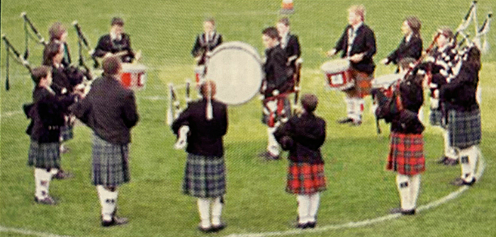 Stuart, an outstanding solo piper in is own right, spent ten years with SFU winning every major award available to them. In his spare time between hopping across the Atlantic, he started tutoring local kids in his home town and from there the band just grew.