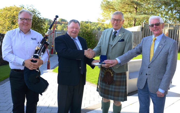The accompanying photograph [top] shows Kenny MacLeod of McCallums with the prize pipes, David Kettlewell, and Stuart Rose, along with Colin Kerr of the Glasgow Highland Club [kilt], receiving the Kettlewell Legacy Medal on behalf of the competition.