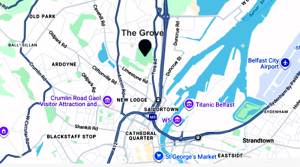 Grove Playing Fields, known locally as ‘The Grove’, is a 20-acre public park north of the city centre, a short drive from Belfast port and the city airport. It is an award winning park with plenty of open space grass and tree cover.