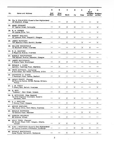 Prizes of note include the Gold Medal going to Dr Bill Wotherspoon (Lament for Patrick Og MacCrimmon), the Clasp going to John MacDougall (MacLean’s March) and the Former Winners going to P/M Angus MacDonald.