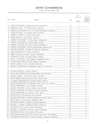 U18 Juniors: 1 Alexander Elrick 2 John MacDonald 3 Donald Campbell 4 Brian Coutts; U15 Juniors: 1 Alasdair Gillies 2 Michael Morrison 3 Ann MacKenzie 4 Robin Smart; Judges for both: NA MacDonald, P/M D MacRae