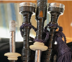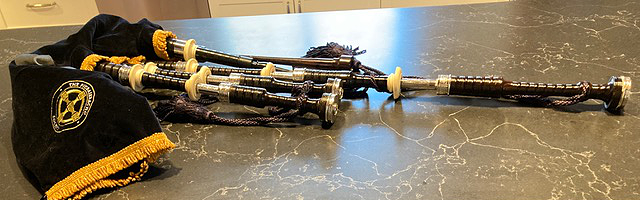 Difficult to say Jack, but from the brown patch they are probably ebony. The drone tops point toward RG Lawrie but the projecting mounts make me think otherwise. Check the hallmarks on the silver if there are any. Not a true guide as the silver could have been bought in by the maker.’ Any other opinions out there?