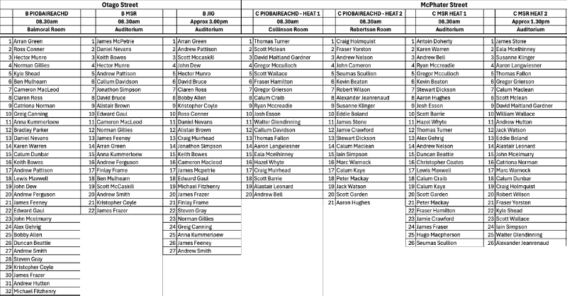 Huge entry tomorrow for this competition for B and C grade pipers: