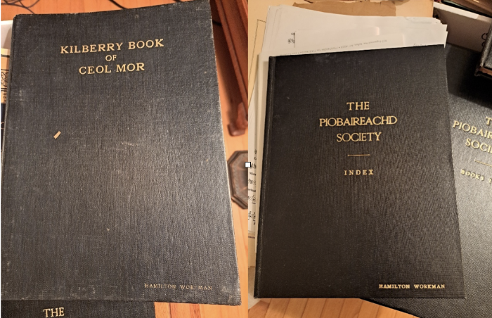 The Kilberry Book and Piobaireachd Society Books were bound and embossed with his name on them by one of his piping students who had just started a bookbinding business. A one-of-a-kind bound index of the Society Books was also included: